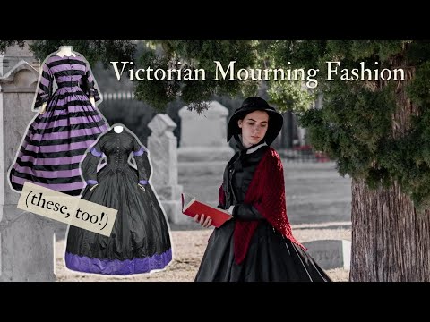 Mourning dresses were made in all black with minimal trimmings, while half-mourning dresses were made in grays and violets. These designs are based on extant mourning dresses.