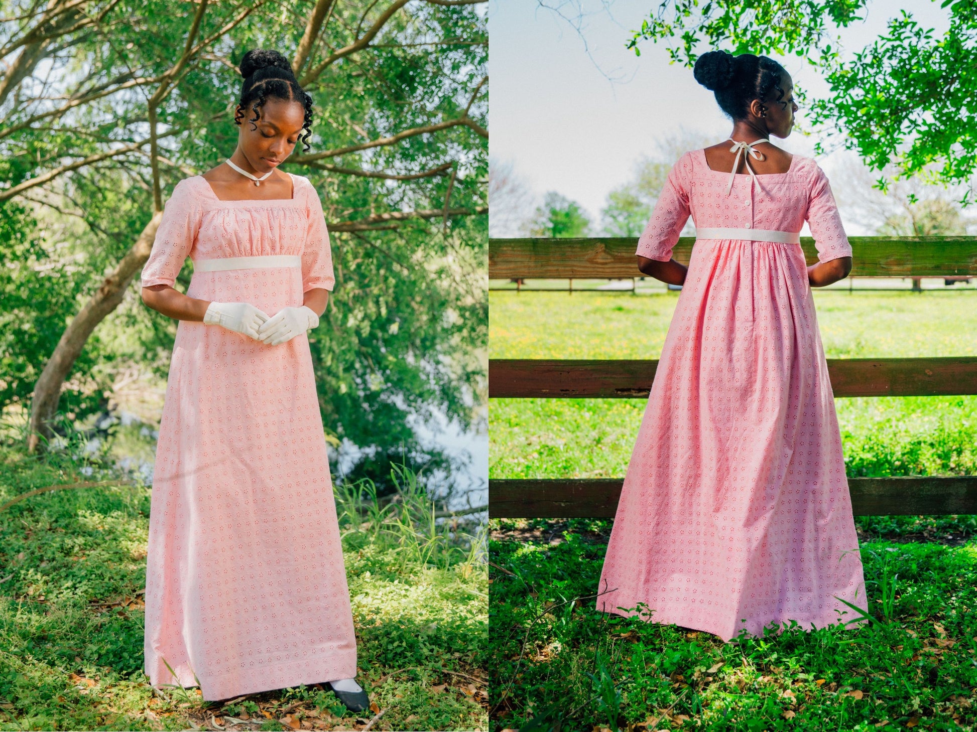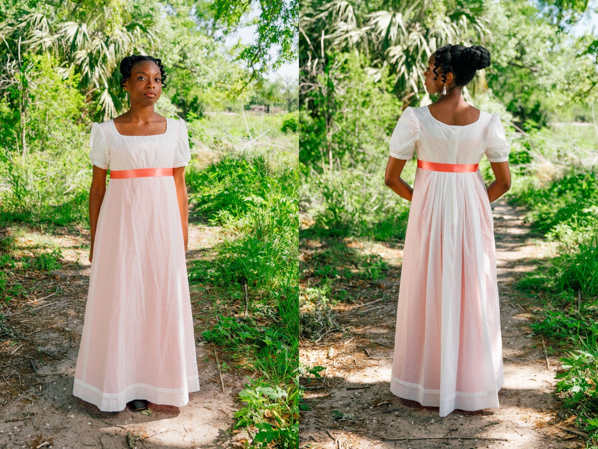 PLEASE NOTE: Dress does NOT include the pictured ribbon sashes. Add a Regency Sash to your cart when you order to get a sash for your dress!