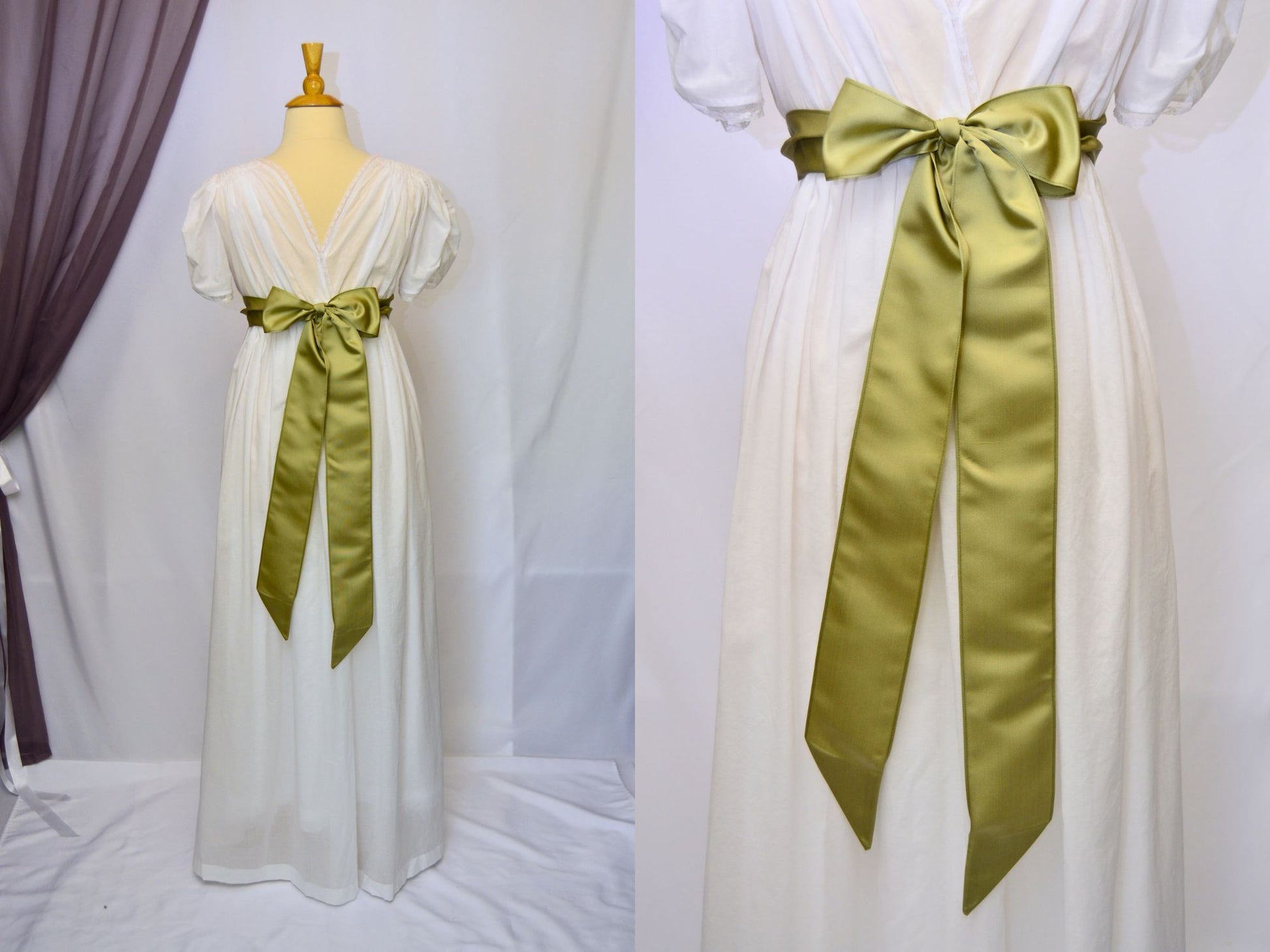 Fashion plates of the Regency era often show a brightly colored sash tied around the underbust of the dress. Add a delicate feminine detail to your Regency dress by ordering a sash to go with it! The sash can tie in either the front or the back of your dress for an added colorful touch.