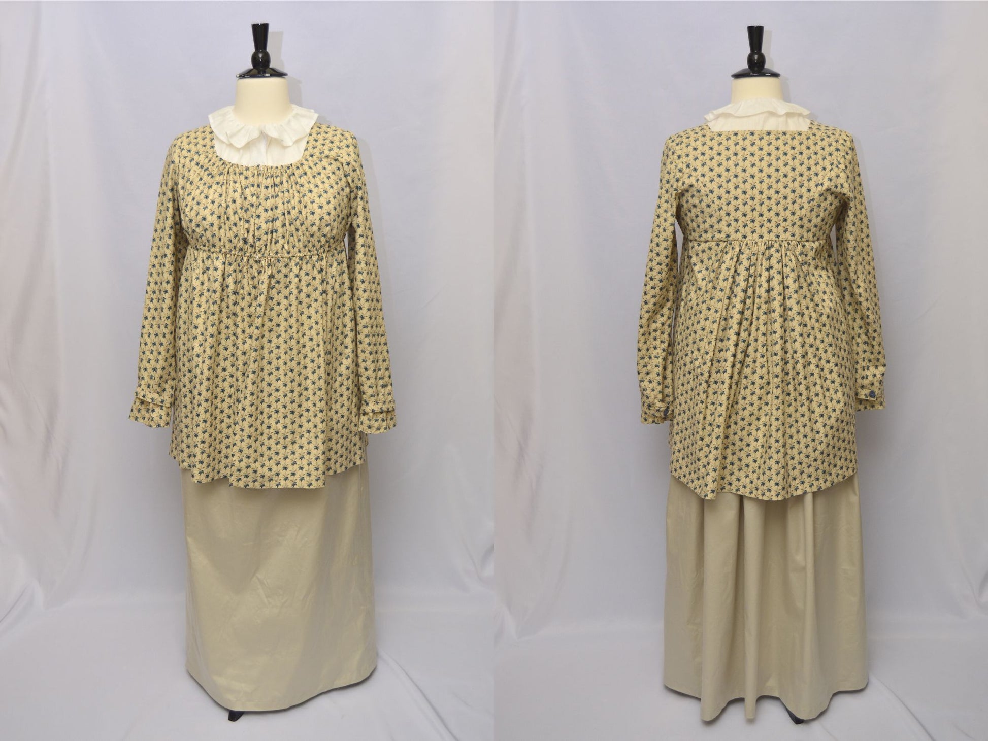 Live out your Jane Austen dreams in a perfectly tailored, high-quality, historically accurate Regency era working class attire. Whether you are an attendee at an event, a historical reenactor, an actress in theatre, or an avid admirer of Jane Austen's works, this ensemble will make you feel like your favorite Austen heroine.