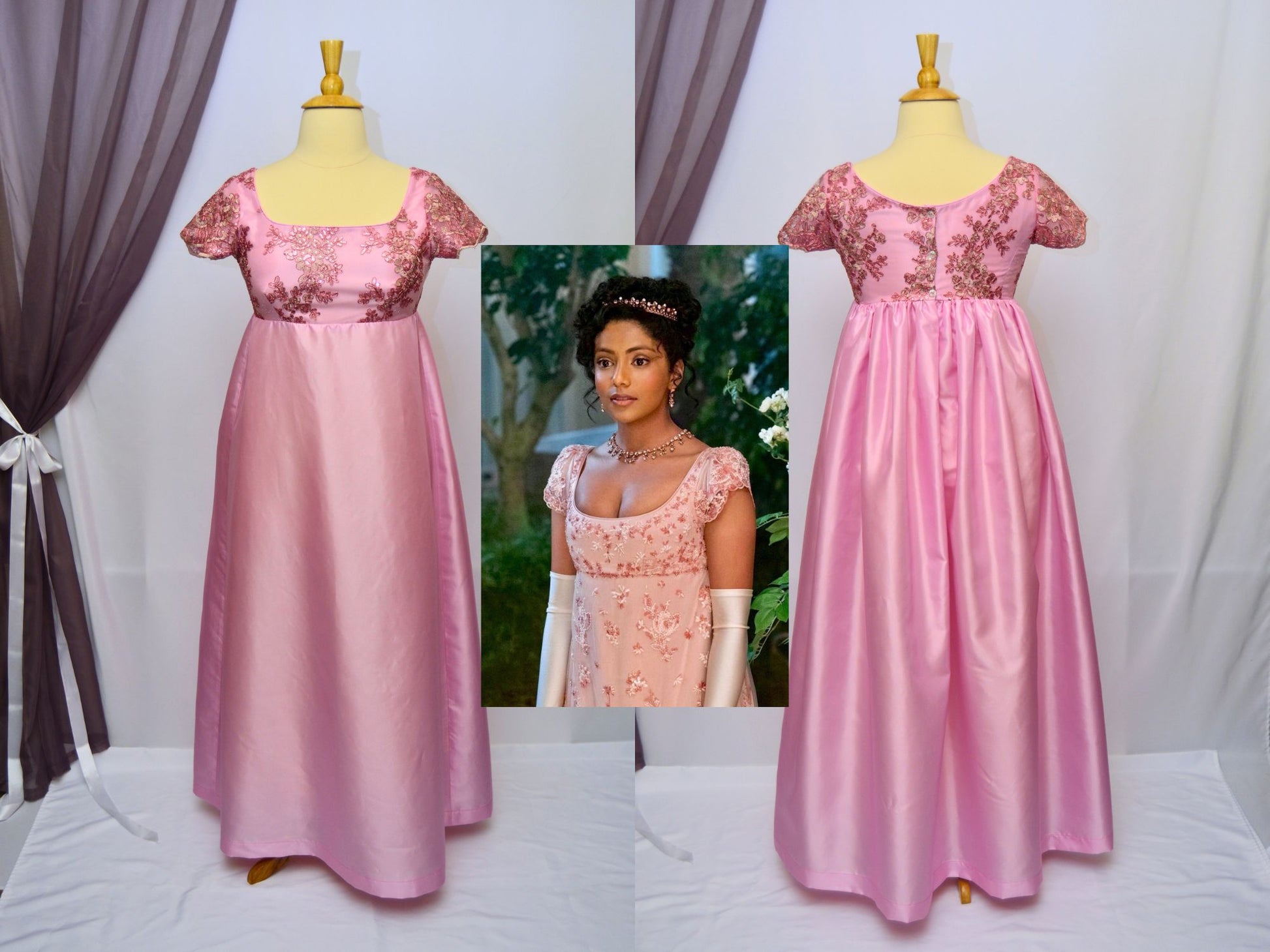 Live your Bridgerton dreams in this high-quality. Regency era ball gown. Whether you are an attendee at an event, an actress in theatre, or an avid admirer of the Netflix show Bridgerton, this dress will make you feel like the diamond of the season.